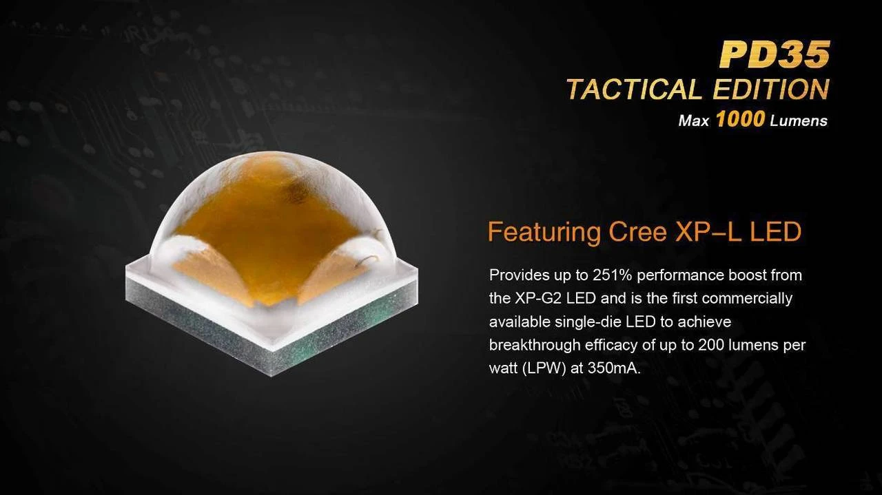 The Fenix PD35TAC (Tactical Edition) remains a pocket-size tactical flashlight but has a higher performance and focuses on tactical employment, compared to its predecessor the Fenix PD35. Fenix has taken the all-time bestselling PD35 LED flashlight and added some innovative user features to enhance its tactical capabilities. Measured at less than 5.51 inches, the Fenix PD35TAC flashlight features a 1000-lumen maximum output and has an impressive beam distance of up to 656 feet.