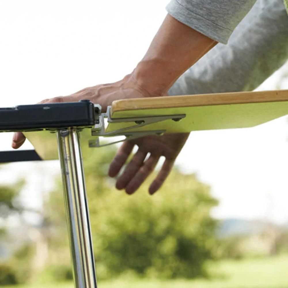 The IGT SLIDE TOPLONG HALF is made of sturdy and sleek bamboo in an updated finish. Use it to easily add 22 inches of extra space to your outdoor kitchen and dining space. The IGT Slide Toplong Half does not require a hook, but slips into the ridges along the outside of the frame. Compatible with the IGT 4 Unit Sitting Set.